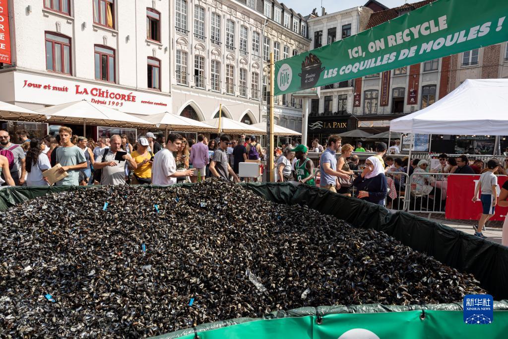 9月3日,在法國里爾舊貨市場上,就餐后留下的貽貝殼被集中收集處理。