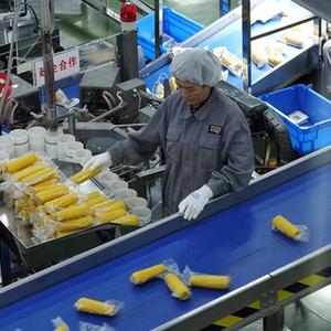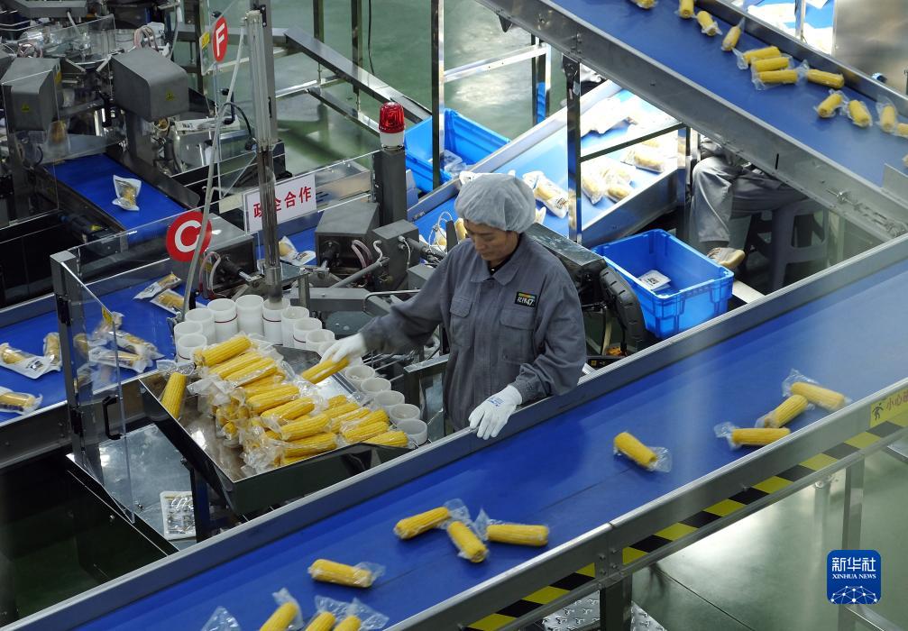 9月2日,在位于齊齊哈爾市依安縣的北緯四十七綠色有機食品有限公司生產車間,工人在分裝鮮食玉米。