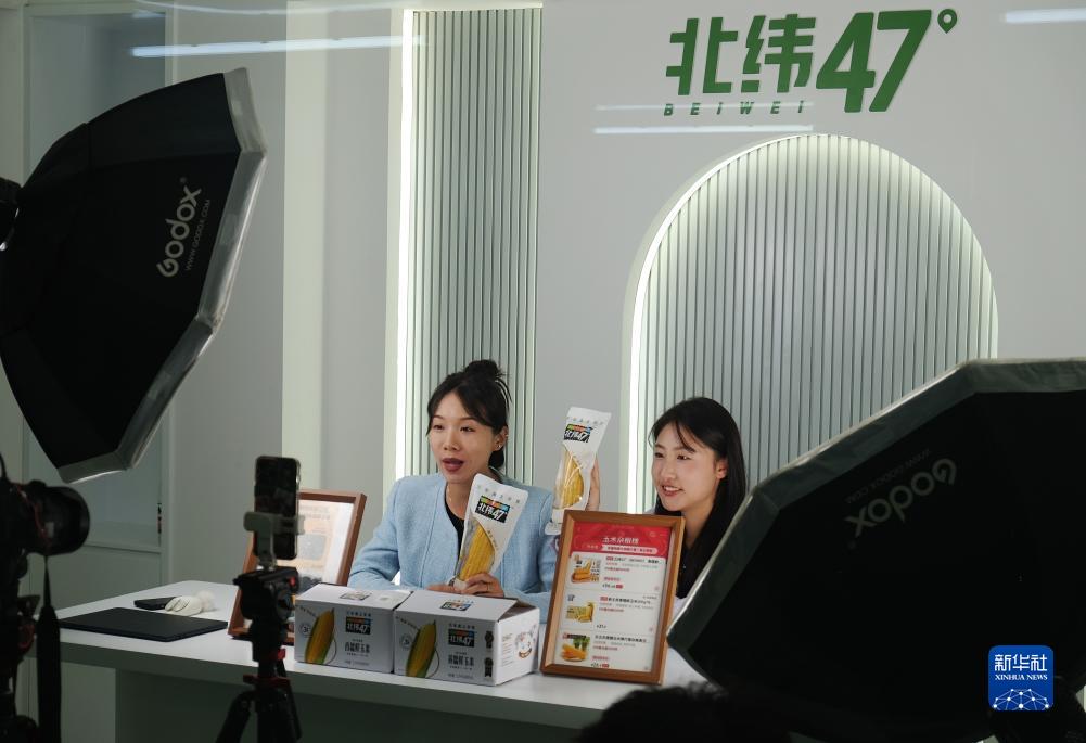 9月2日,在位于齊齊哈爾市依安縣的北緯四十七綠色有機食品有限公司,主播通過網(wǎng)絡(luò)平臺銷售鮮食玉米。