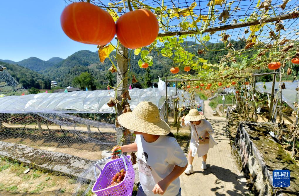 9月3日,游客在湖北省宣恩縣椒園鎮(zhèn)一采摘園里游玩。