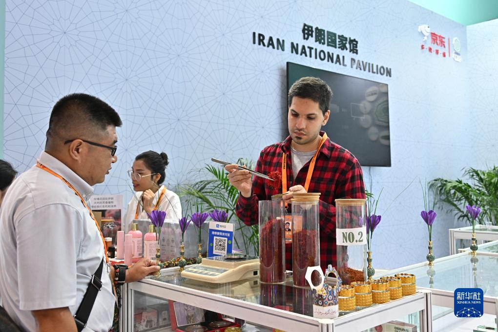 9月4日,一名參觀者在服貿(mào)會(huì)國(guó)家會(huì)議中心的伊朗展臺(tái)購(gòu)物。