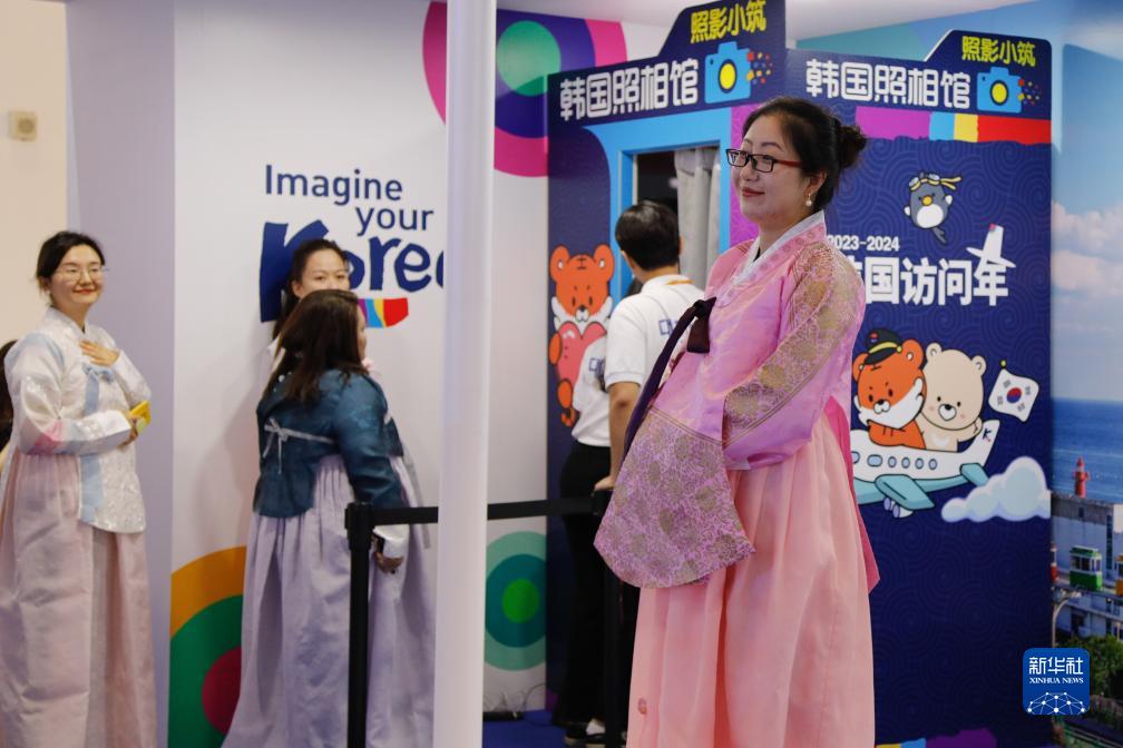 9月4日,在服貿會國家會議中心的韓國展臺,觀眾在拍照留念。