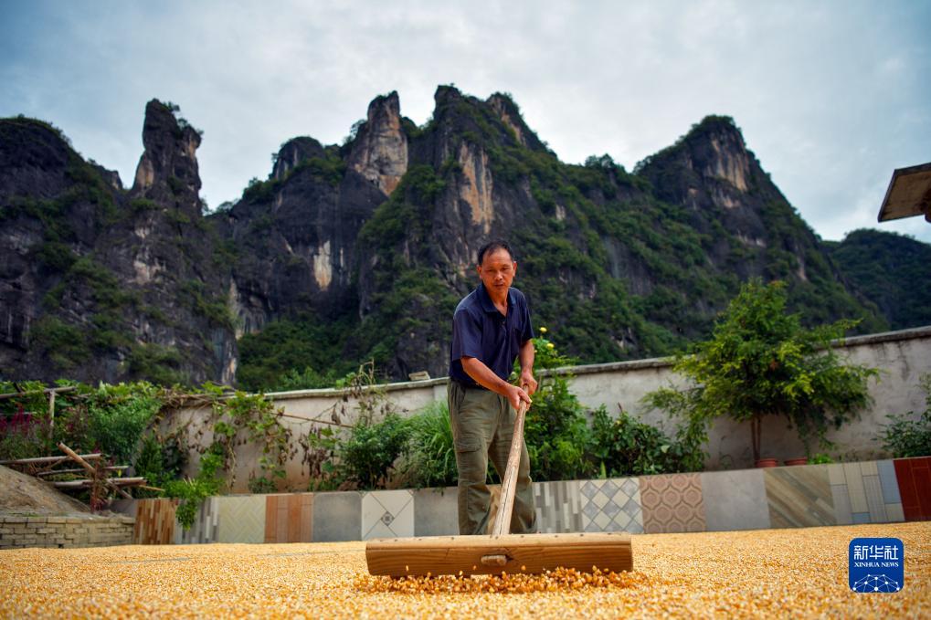 9月4日,村民在貴州省遵義市余慶縣白泥鎮(zhèn)民同村晾曬農(nóng)作物。