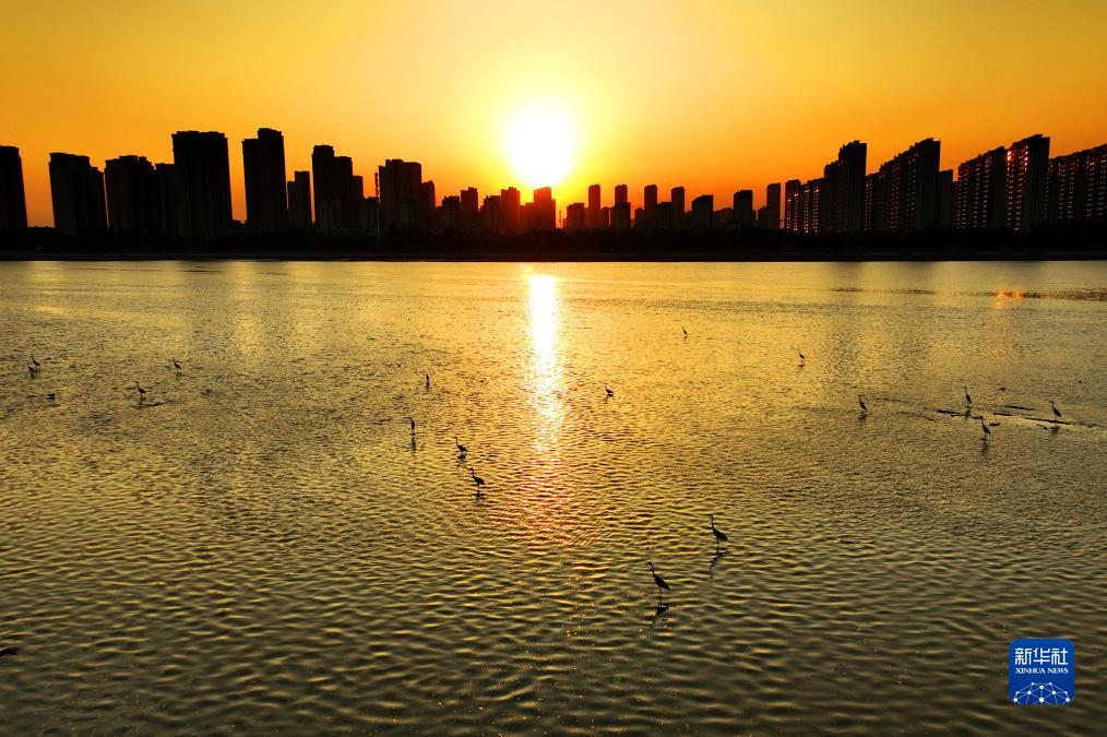初秋時(shí)節(jié),位于山東省青島市城陽區(qū)流亭街道的墨水河入海口濕地晚霞披金,蒼鷺、白鷺等水鳥覓食棲息,呈現(xiàn)一幅美麗的生態(tài)畫卷。