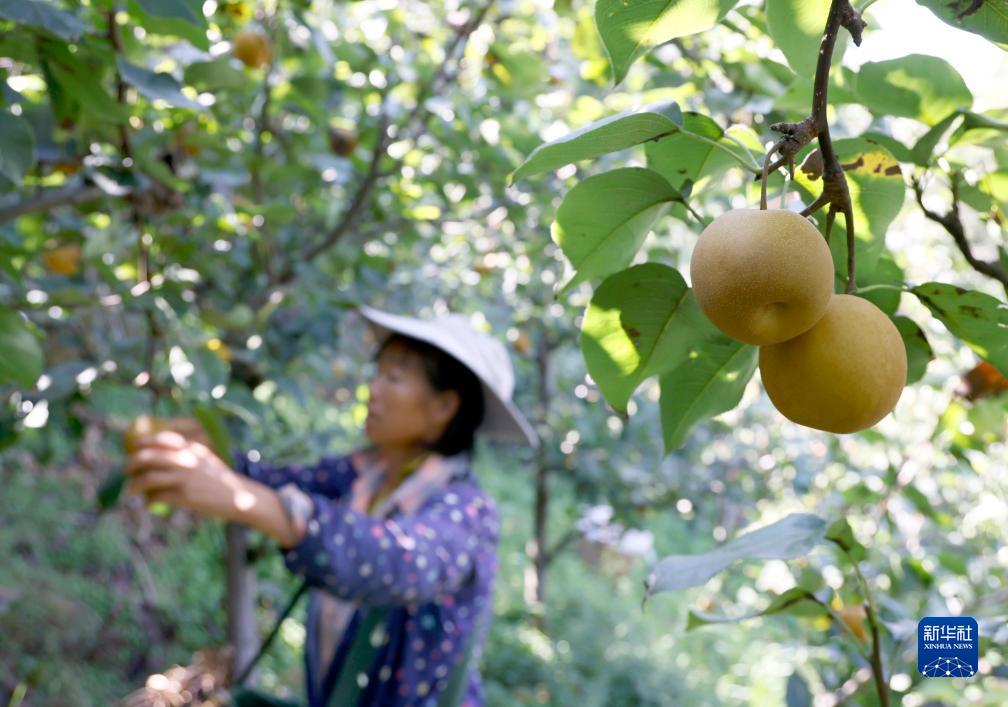 9月5日,果農在貴州省匯川區團澤鎮三聯村水果種植基地采摘鮮梨。