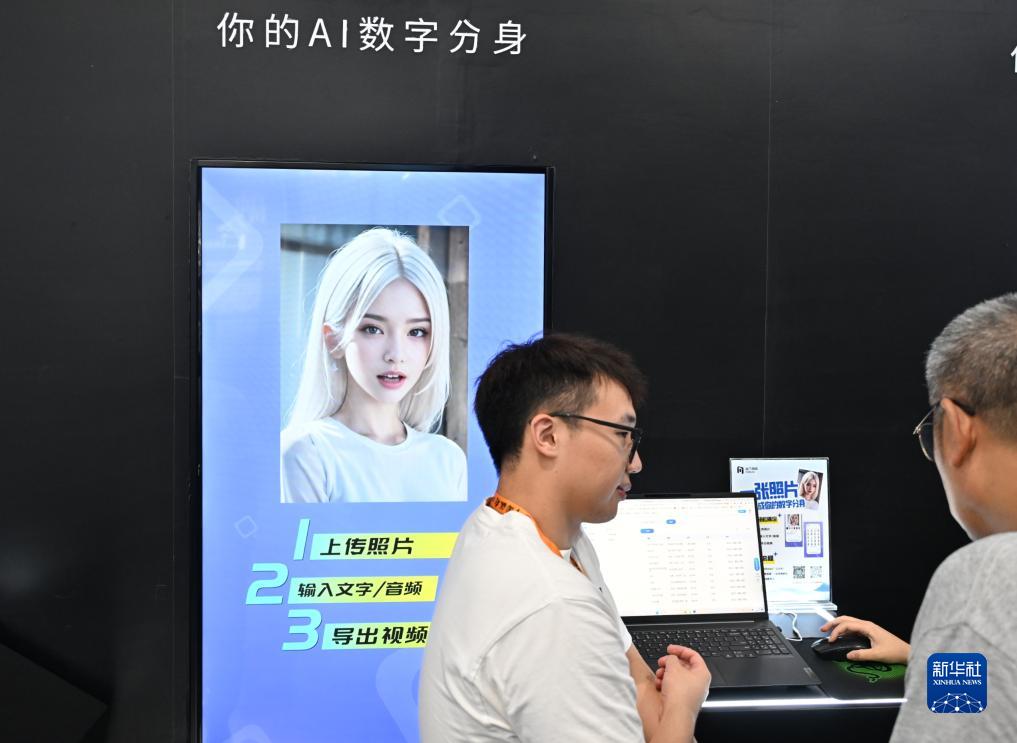 9月5日,在服貿會首鋼園區,參觀者了解AI數字人形象產品。