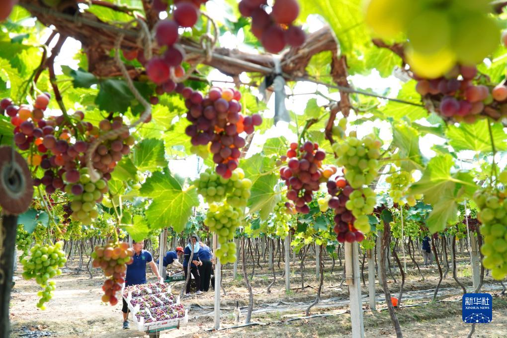 近日,山東省高密市種植的葡萄進(jìn)入成熟期,葡萄種植戶們忙著采收成熟的葡萄供應(yīng)市場(chǎng)。山東省高密市近年來(lái)因地制宜發(fā)展葡萄種植業(yè),目前全市葡萄種植面積超過(guò)7000畝,帶動(dòng)當(dāng)?shù)剞r(nóng)戶增收致富。