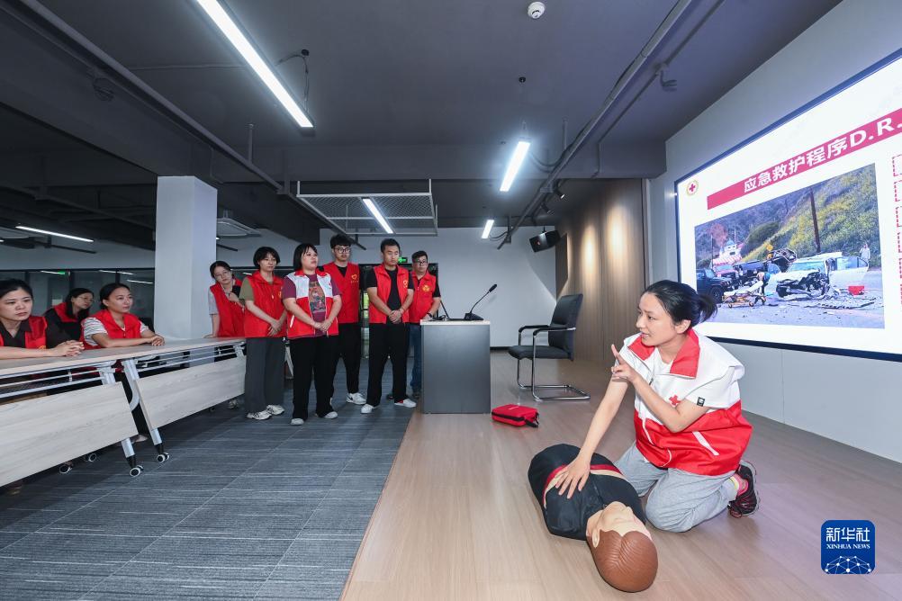 當日,浙江省湖州市吳興區道場鄉在湖山府社區黨群服務中心組織開展“亞運有我、志愿同行”新時代文明實踐志愿服務培訓班,由年輕黨員、退役軍人、社會工作者、居民群眾等共同組成亞運志愿服務隊,圍繞語言能力、急救技能、助殘服務、應急救援等進行理論和實操培訓。