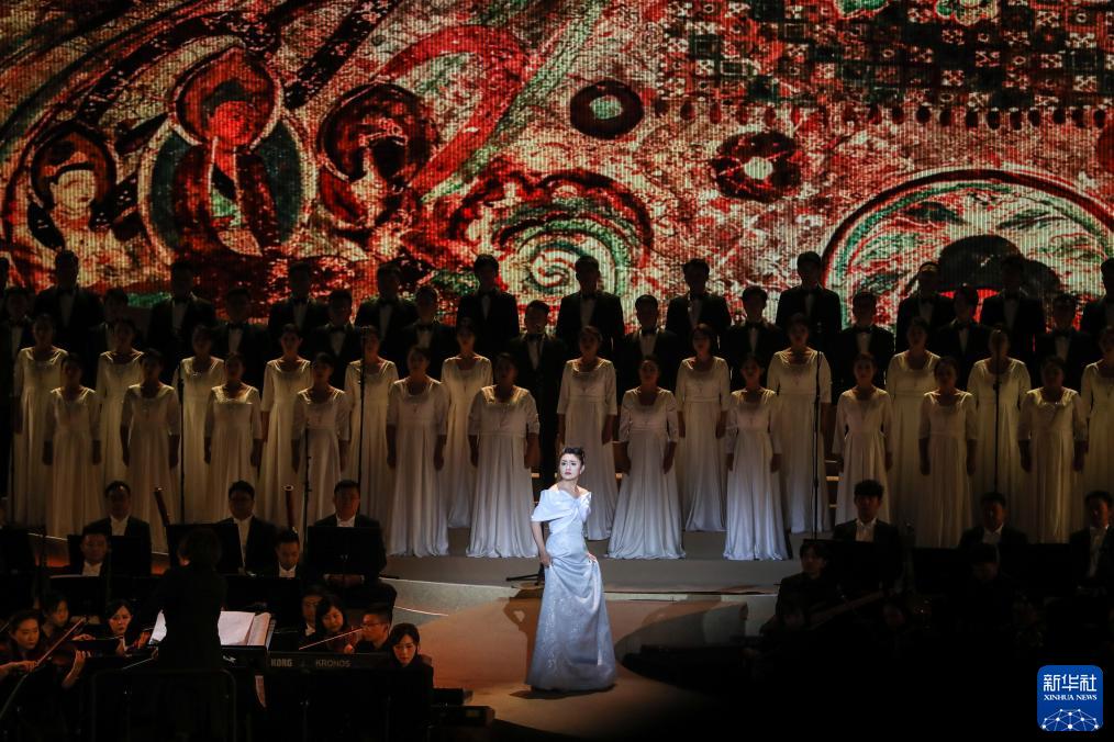 9月5日晚,音樂劇《飛天》(音樂會)在位于甘肅省敦煌市的敦煌大劇院上演。本場演出精選音樂劇《飛天》中14首經典唱段,以敦煌飛天為靈感,以“一帶一路”為主題,薈萃絲路文化元素,講述敦煌精彩故事。