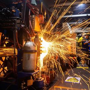 9月6日凌晨,在京廣高鐵株洲西至衡山西區間,鐵路工人操作車載焊機進行焊軌作業。
