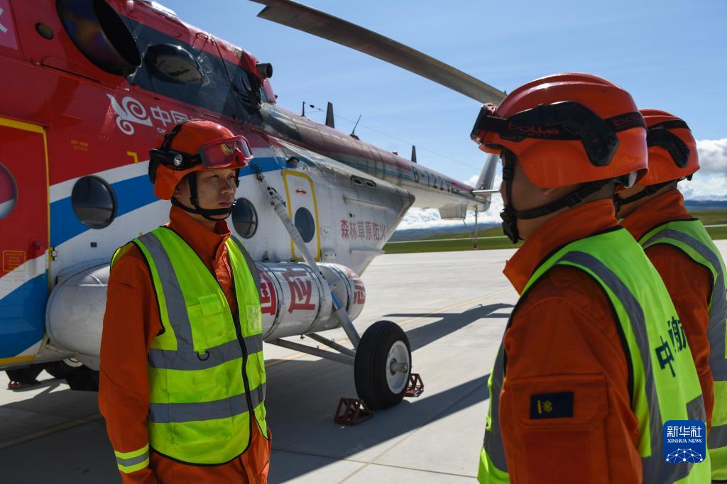 新疆伊犁哈薩克自治州森林消防支隊指戰(zhàn)員在昭蘇天馬機場進行訓練(9月5日)。