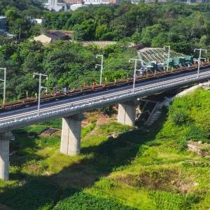 當日,在四川省瀘州市馮灣特大橋施工現場,隨著第一組500米長的鋼軌穩穩落下,渝昆高鐵川渝段全面進入鋪軌階段。渝昆高鐵是全國鐵路網“八縱八橫”主通道之一的京昆通道的重要組成部分,設計時速350公里。