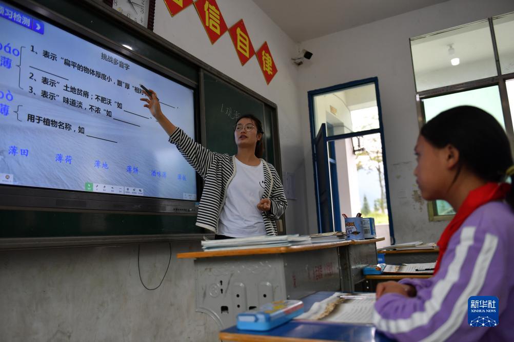 9月4日,報木小學的教師劉鳳英在給四年級學生上課。