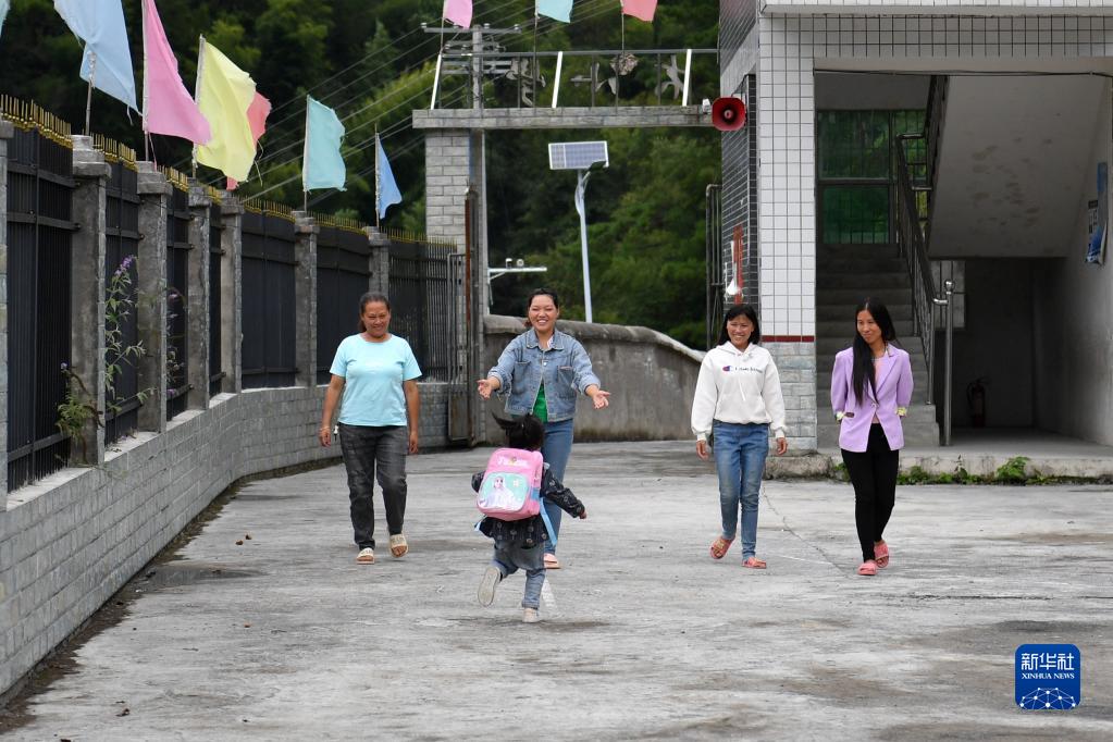 9月4日,報木小學一名學前班的學生放學后跑向家長。