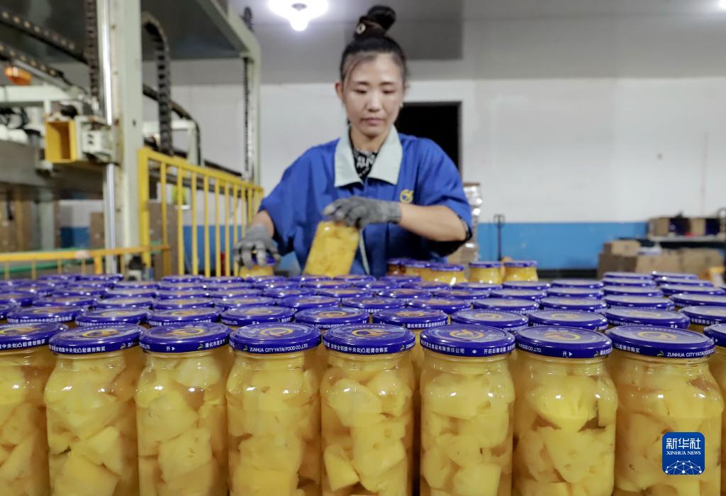 9月6日,工人在河北省遵化市一家水果罐頭加工企業的生產車間工作。