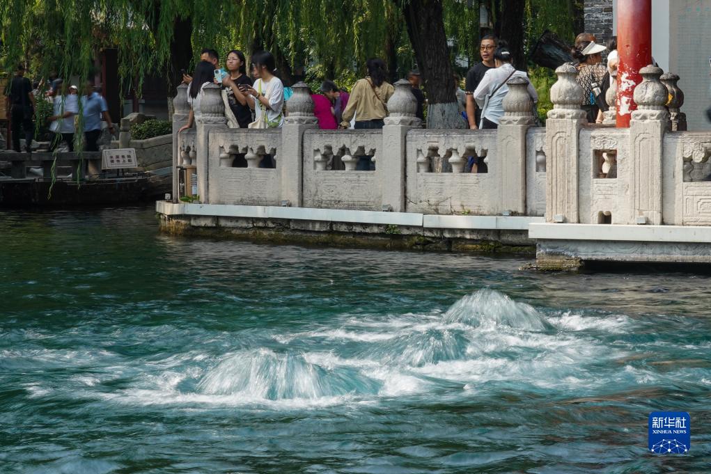 9月6日,游客在濟南趵突泉公園內參觀。
