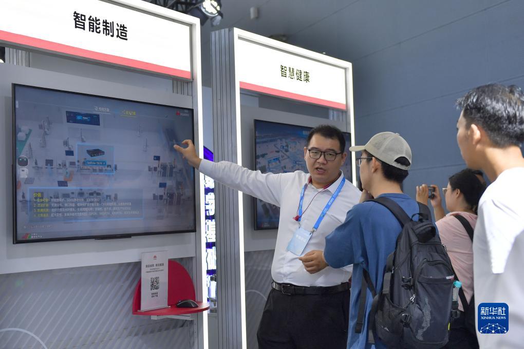 9月6日,在2023中國(guó)國(guó)際數(shù)字經(jīng)濟(jì)博覽會(huì)上,工作人員向參觀者介紹智能制造項(xiàng)目。