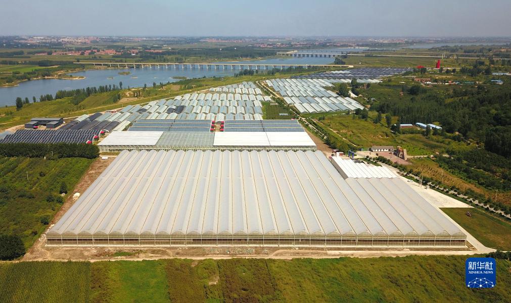 9月6日拍攝的位于山東省昌邑市飲馬鎮(zhèn)的高標(biāo)準(zhǔn)種植大棚(無人機照片)。
