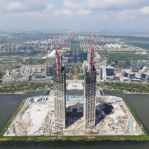 當日,位于中國(上海)自由貿易試驗區臨港新片區的中建二局臨港西島中銀金融中心南北雙塔核心筒完成封頂,高度195米的兩座主樓核心筒工程完成施工。臨港西島中銀金融中心項目總建筑面積28.25萬平方米,建筑主體為南北兩座高200米的雙子塔樓,中心建成后將成為以金融總部辦公為主體的大型城市綜合體。
