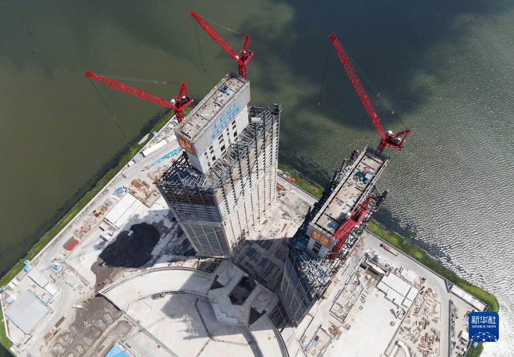 9月6日拍攝的臨港西島中銀金融中心項目建設(shè)工地(無人機(jī)照片)。