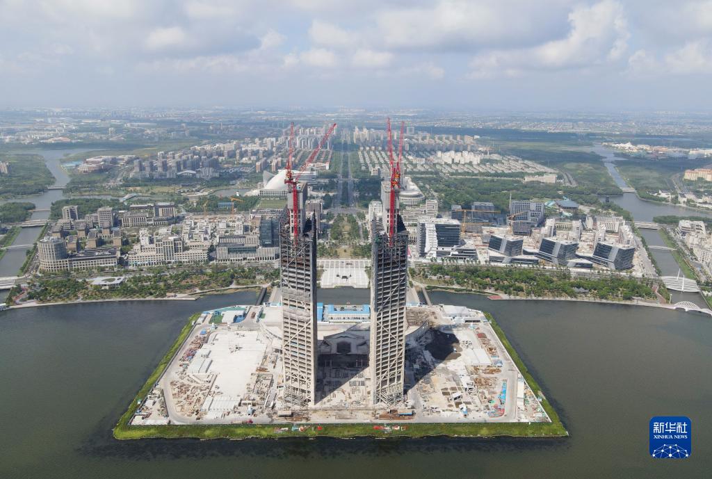 9月6日拍攝的臨港西島中銀金融中心項目建設(shè)工地(無人機照片)。