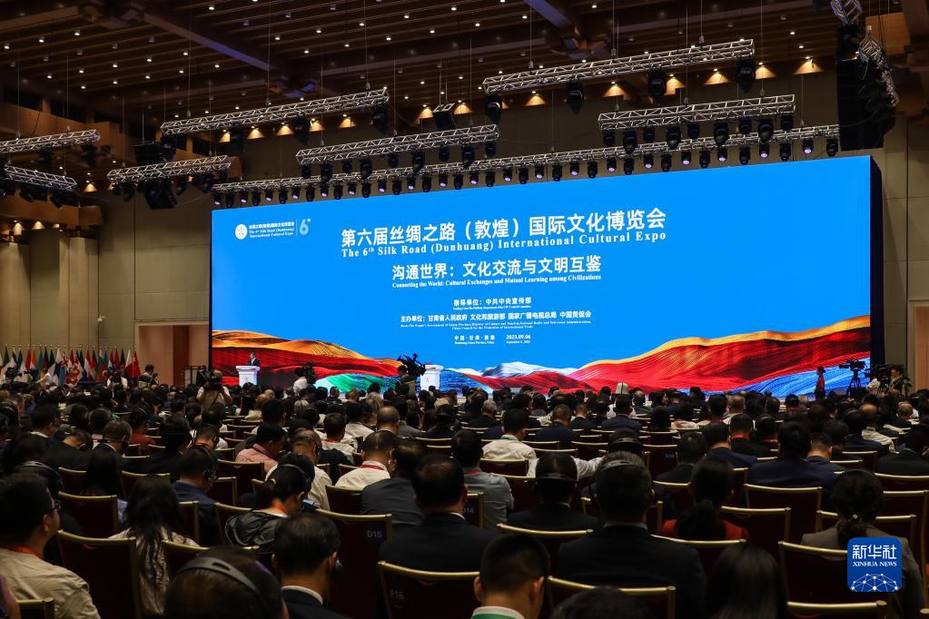 這是9月6日拍攝的第六屆絲綢之路(敦煌)國際文化博覽會開幕式現場。