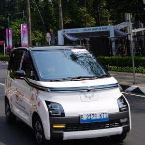 9月6日,在印度尼西亞雅加達,一輛五菱新能源車Air ev行駛在第43屆東盟峰會會場附近。