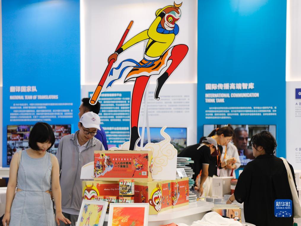 9月6日,觀眾在服貿(mào)會(huì)文旅服務(wù)專題展中國(guó)外文出版發(fā)行事業(yè)局展臺(tái)參觀。