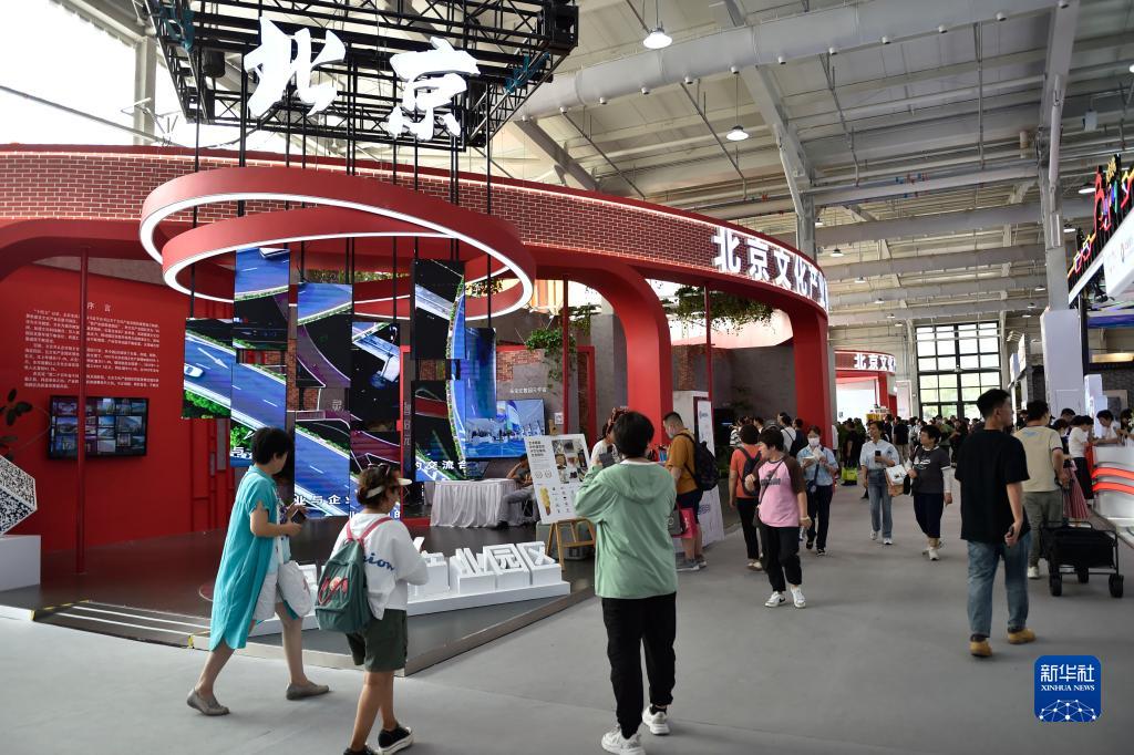 這是9月5日在服貿會首鋼園區拍攝的文旅服務專題展區北京文化產業園展位。