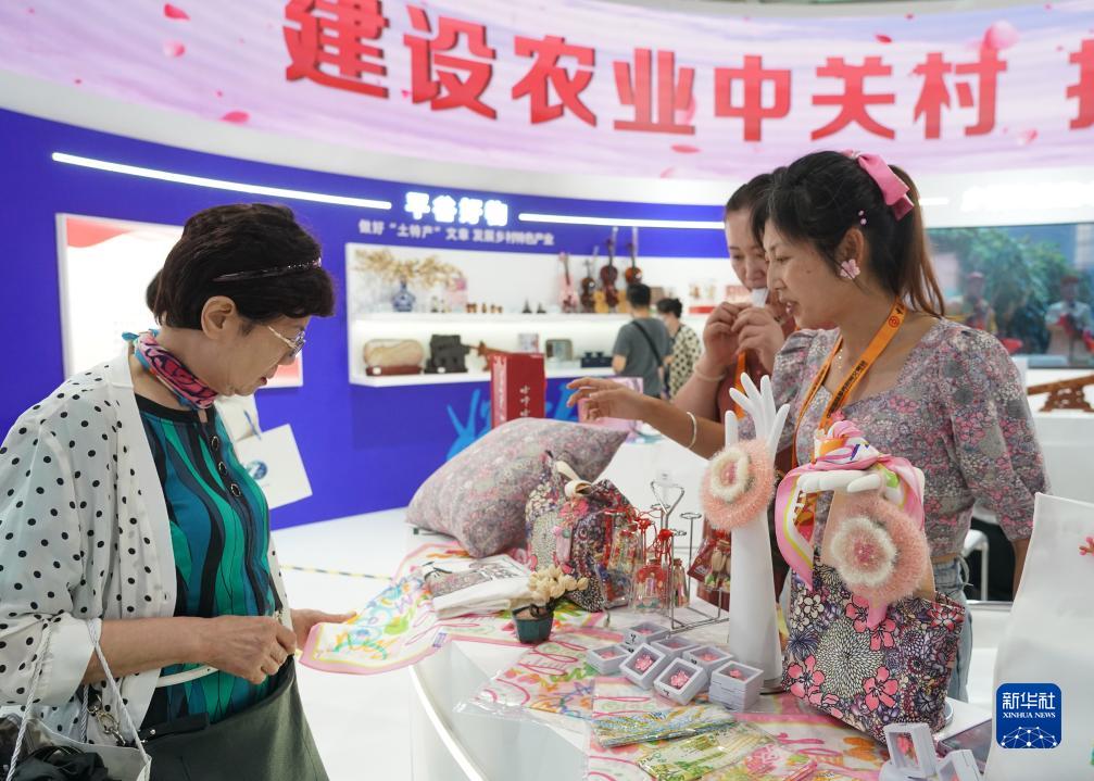 9月6日,觀眾在2023年服貿會文旅服務專題展區平谷展臺參觀。