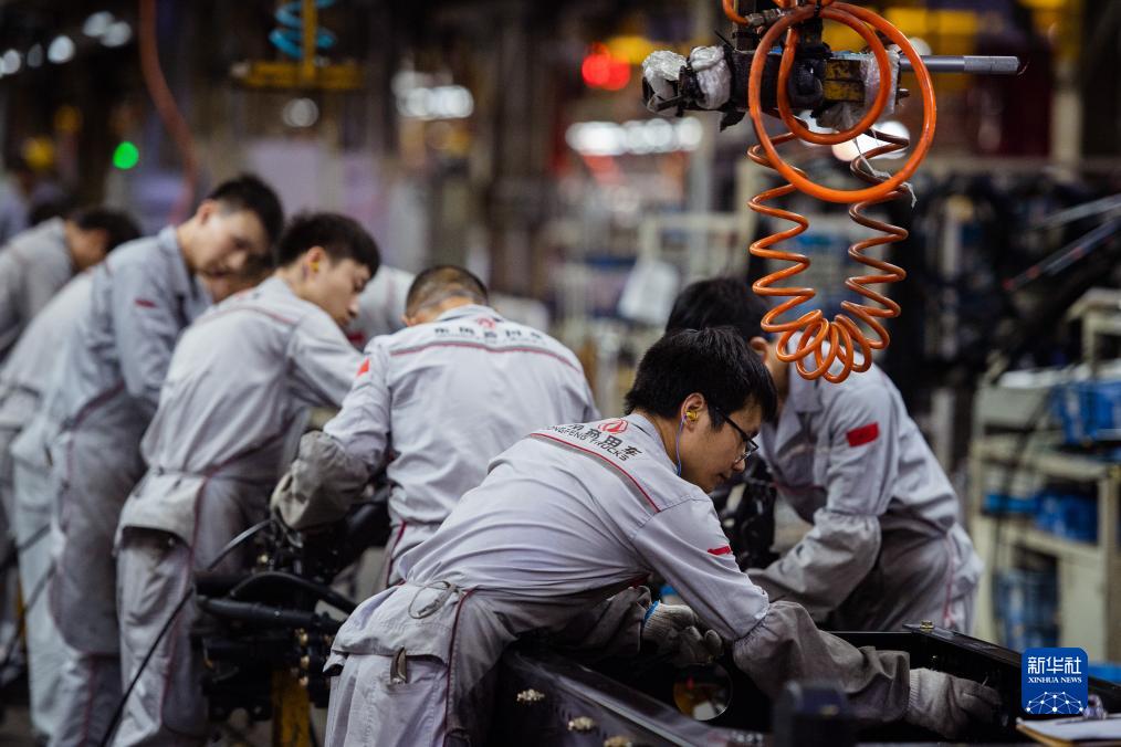 9月6日,在東風商用車有限公司車輛工廠,工人在進行整車管線束鋪設作業。