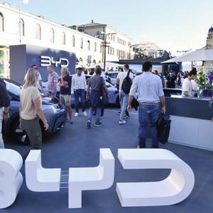 9月5日,人們在德國慕尼黑國際車展的城市公共展示區(qū)參觀比亞迪汽車。