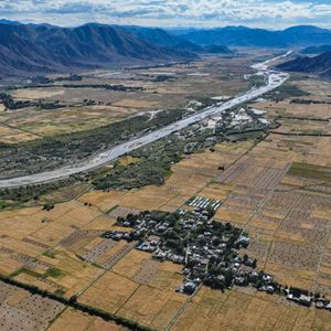 西藏日喀則市年楚河流域糧食長勢喜人(9月6日攝 無人機照片)。