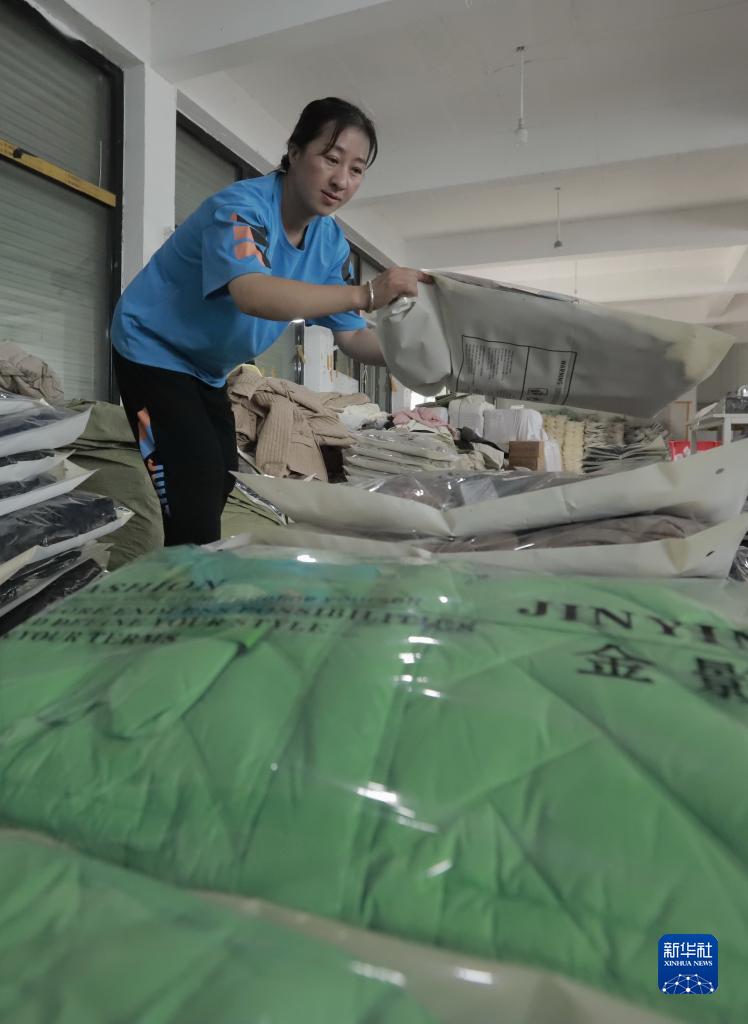 9月6日,工人在遵化市石門鎮(zhèn)一家服裝加工企業(yè)的成品車間整理服裝。