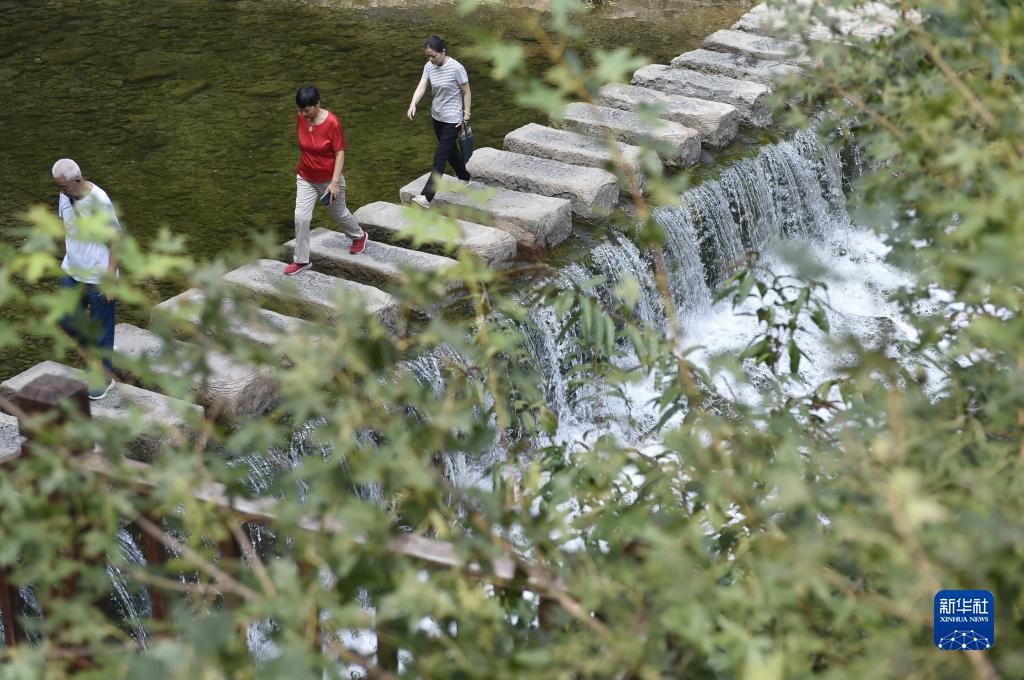 9月6日,游人在太行大峽谷中游覽。