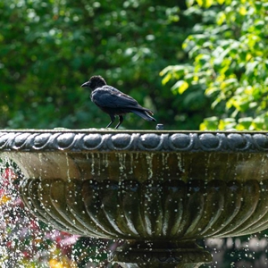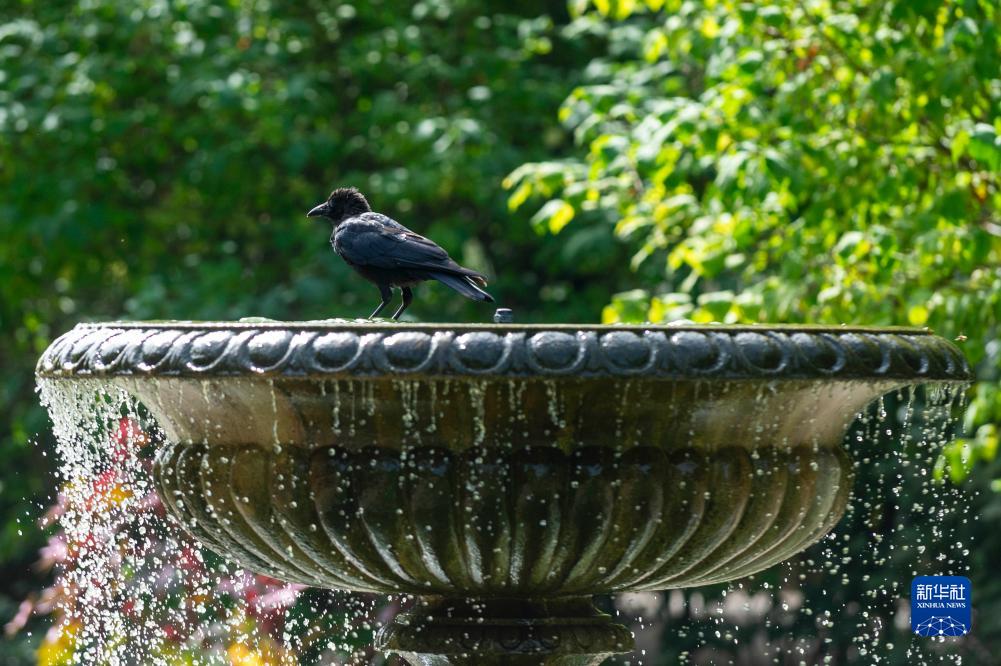 9月6日,一只烏鴉停在英國倫敦攝政公園一處噴泉上。