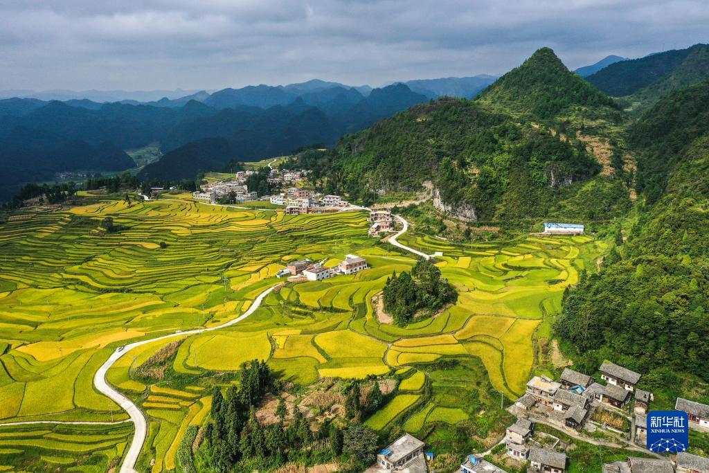 白露將至,貴州省黔南布依族苗族自治州貴定縣沿山鎮臘利梯田里的水稻逐漸成熟,呈現出一幅豐收在望的秋日畫卷。