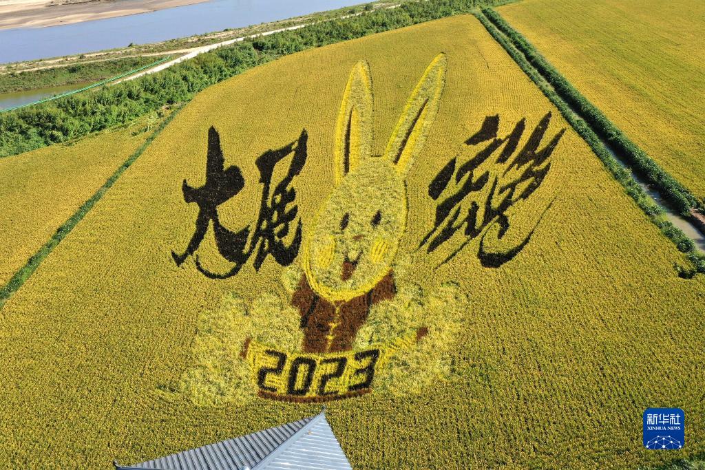 初秋時節(jié),遼寧省鞍山市臺安縣遼河文化旅游景區(qū)的稻田畫吸引不少游客前來參觀游覽。由多種顏色組成的巨型稻田畫勾勒出豐收壯美景象。