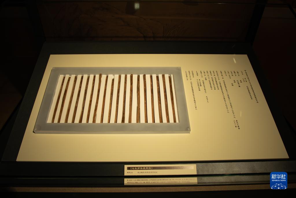 這是9月7日拍攝的甘肅簡牘博物館展出的由18枚簡牘組成的“過長羅侯費用薄”。