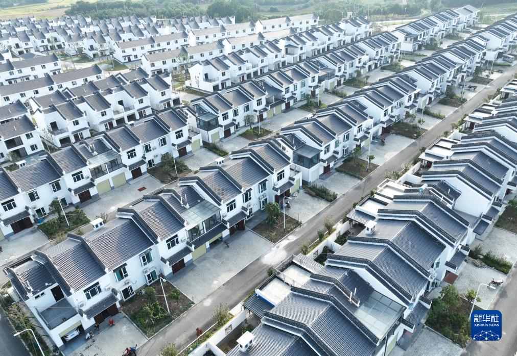 建設完工的沙洋縣沈集鎮帥店新社區(9月7日攝,無人機照片)。
