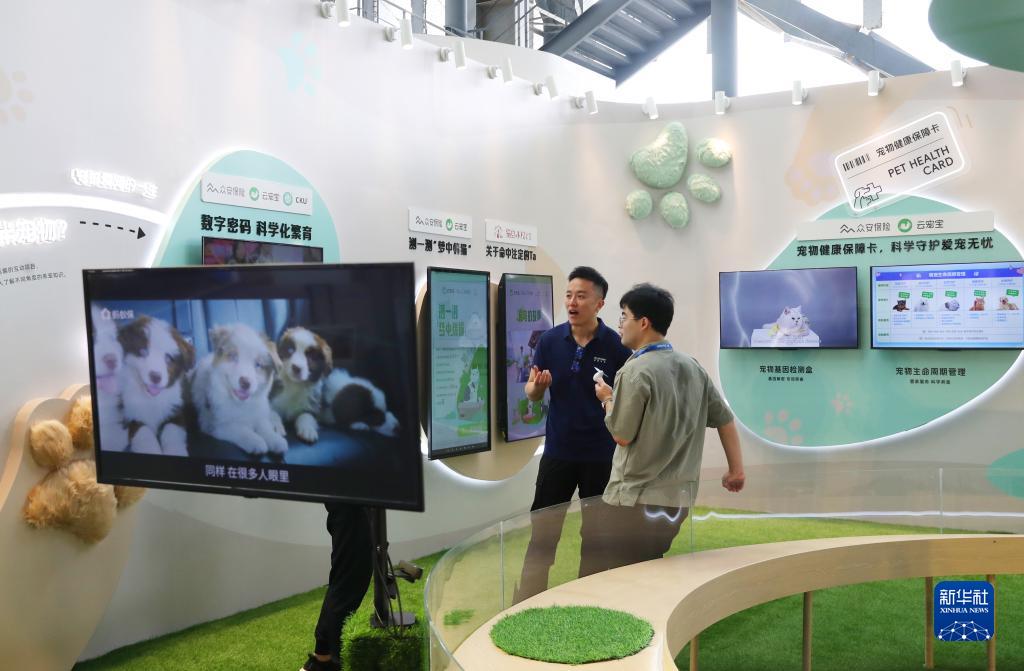 9月7日,參觀者在外灘大會展覽區寵物之家展臺內交流討論。