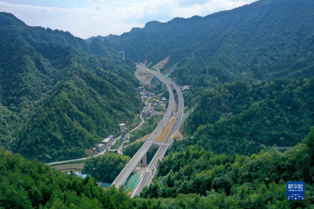 在湖北省恩施州境內,穿越大山的宣咸高速橋隧相連(9月7日,無人機照片)。
