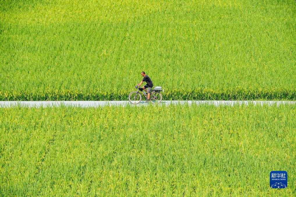 時下,位于重慶市大足區拾萬鎮長虹村的隆平五彩田園迎來秋收季,300畝彩色水稻勾勒出金秋好“豐”景。