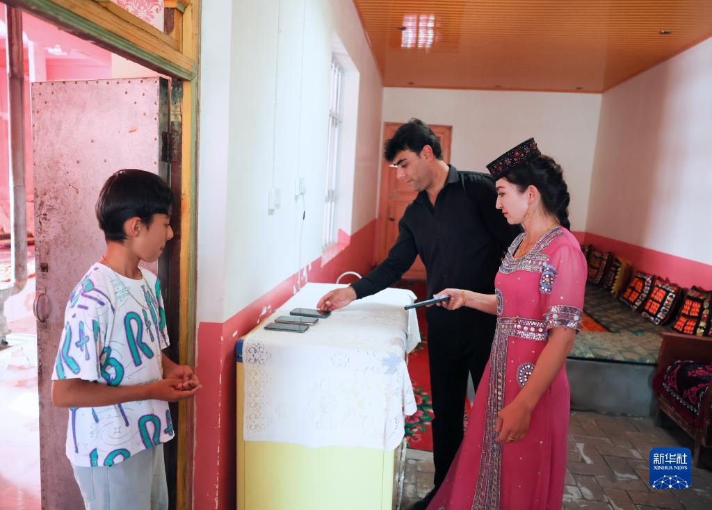 晚飯前,為了讓家人能好好聊天交流感情,拜合提亞爾·居馬汗和妻子將手機放在另外一個屋子(9月4日攝)。