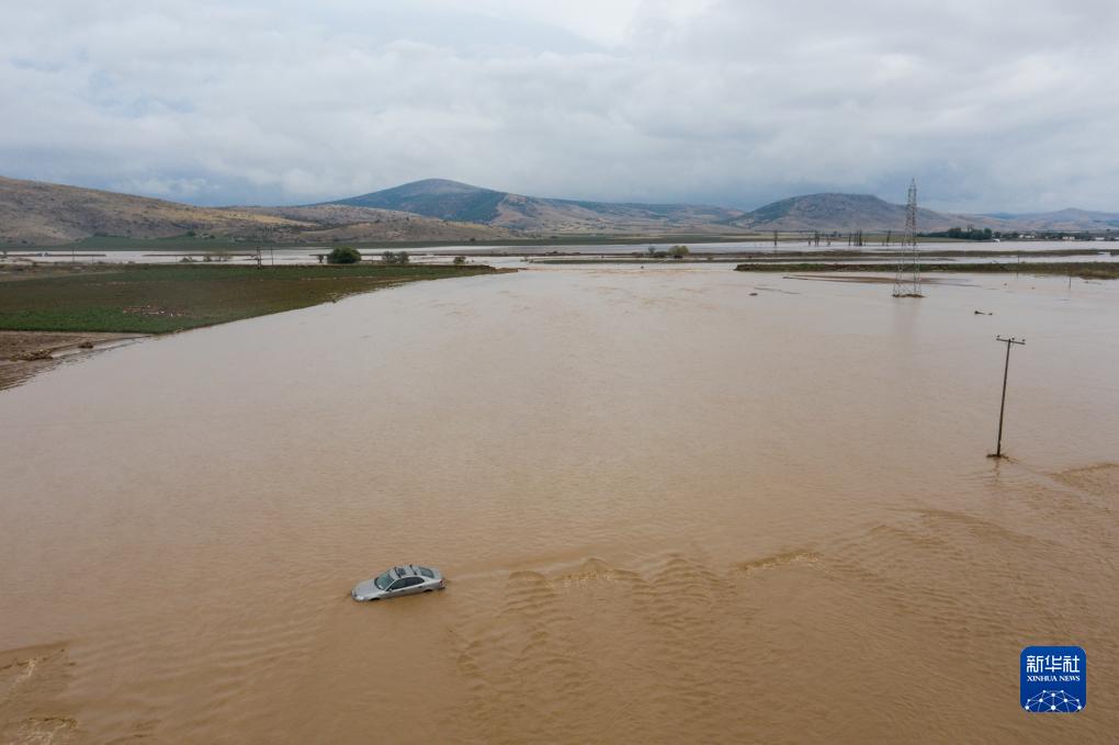 這是9月7日在希臘卡爾季察拍攝的洪水災區。