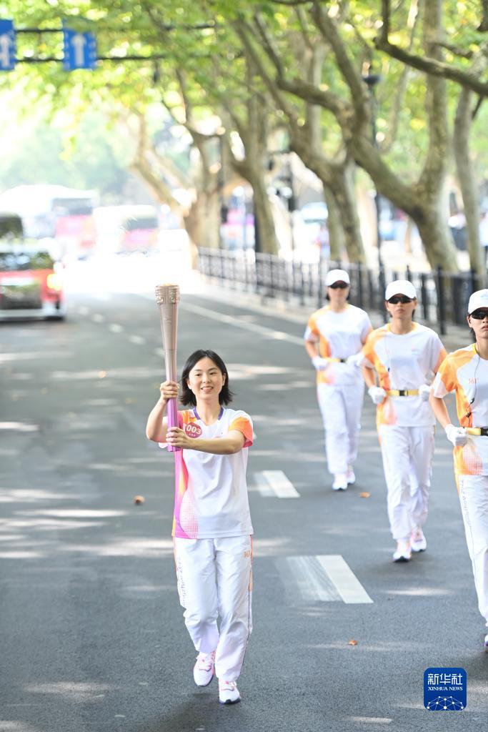 9月8日,火炬手徐川子在火炬傳遞中。