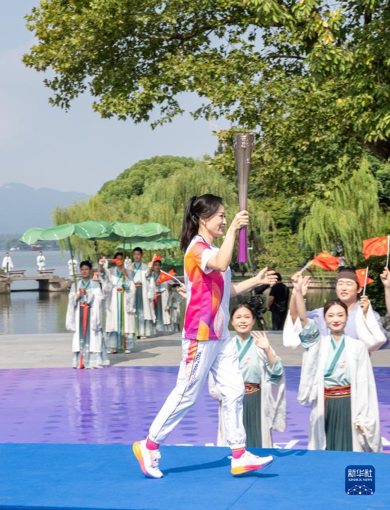 當日,杭州亞運會火炬傳遞在杭州西湖涌金公園廣場啟動,共有106棒火炬手參與當日傳遞。