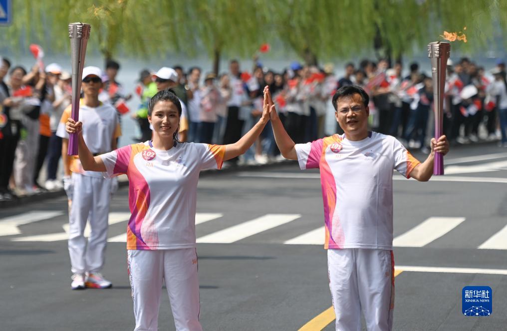 當日,杭州亞運會火炬傳遞在杭州西湖涌金公園廣場啟動,共有106棒火炬手參與當日傳遞。