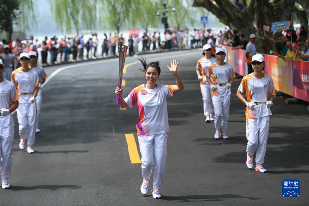 當日,杭州亞運會火炬傳遞在杭州西湖涌金公園廣場啟動,共有106棒火炬手參與當日傳遞。
