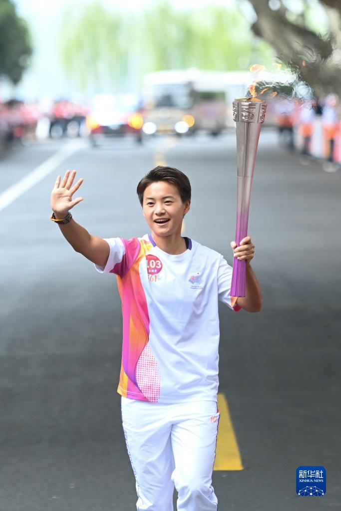 當日,杭州亞運會火炬傳遞在杭州西湖涌金公園廣場啟動,共有106棒火炬手參與當日傳遞。